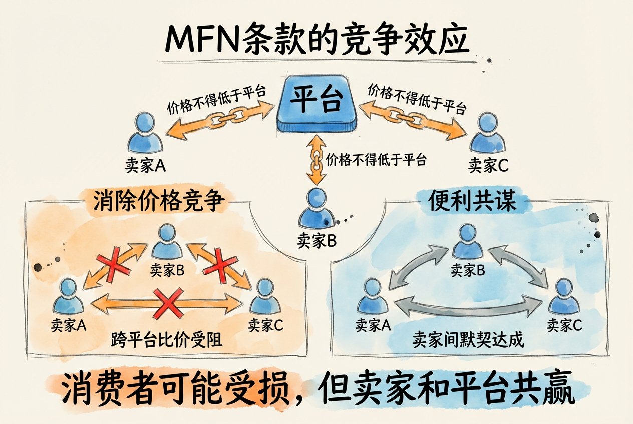 政策评价:MFN 条款对消费者是有利还是有害?欧洲多国禁止的是宽口径 MFN(禁止卖家在任何渠道提供更低价格),而非所有形式的 MFN。为什么做这种区分?美国为何相对宽容?