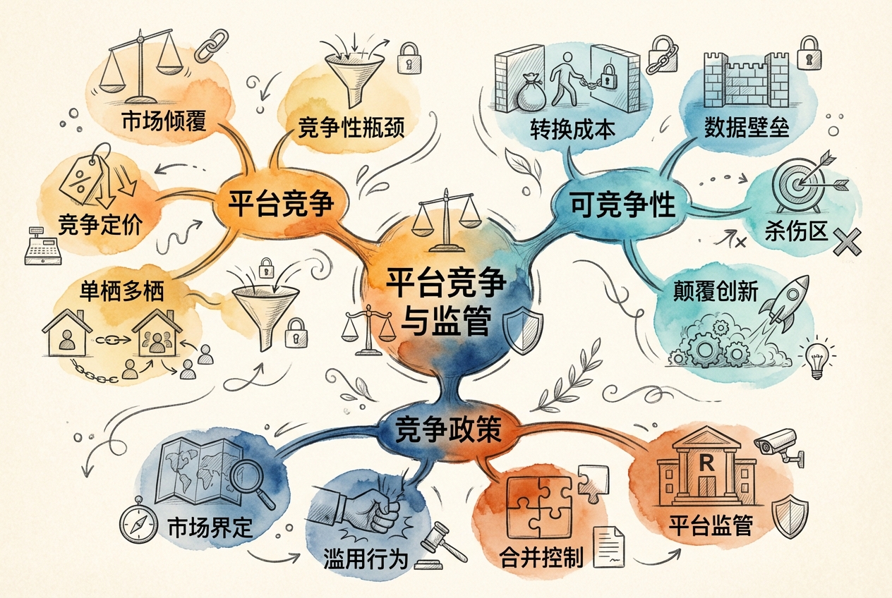 本章将理论与政策结合,系统分析平台竞争的经济学原理,探讨市场可竞争性问题,并评估竞争政策与监管框架的有效性。